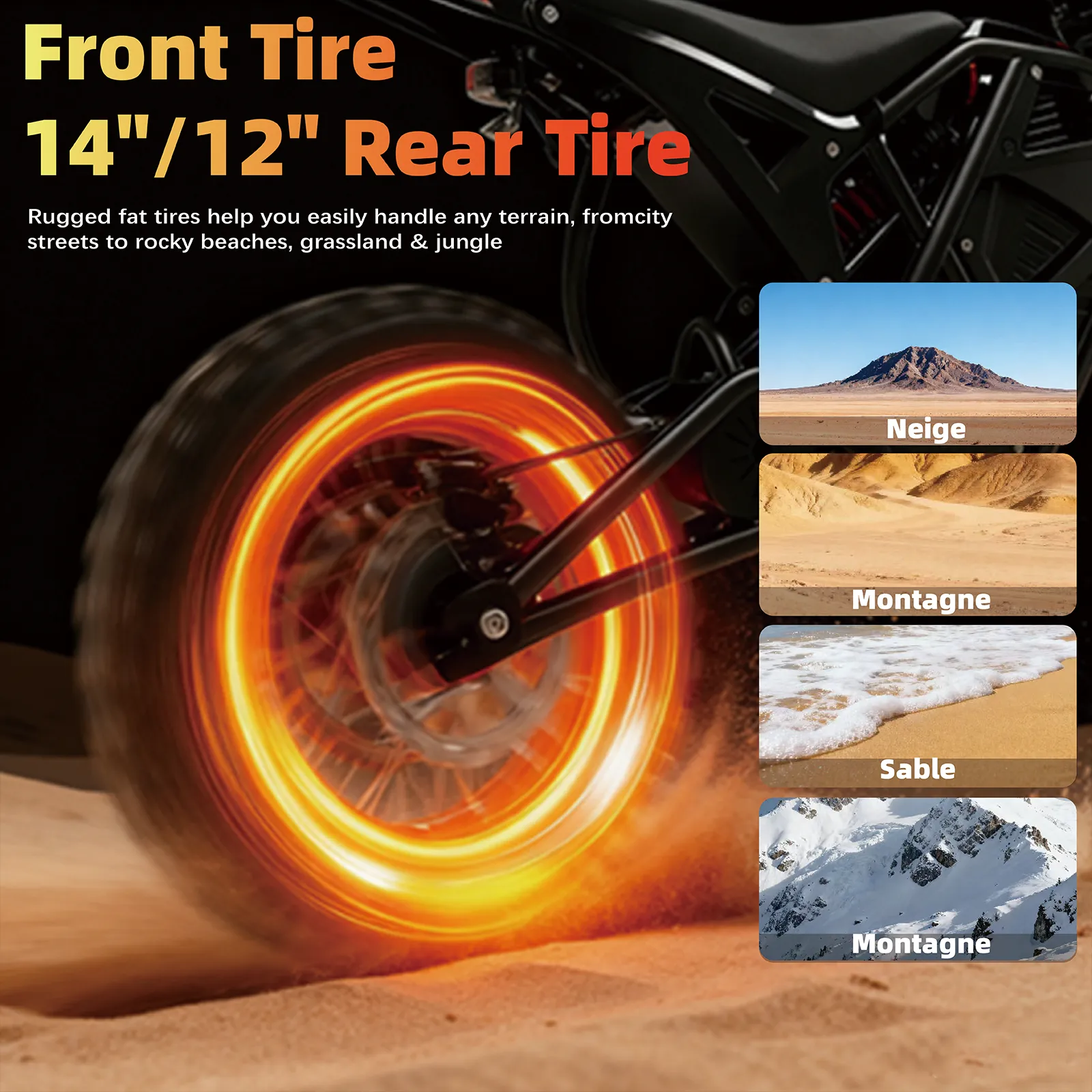 ABKDO Youth&Adult Electric Bike 3000W Peak Power Mid-Mount Motor 48V 23Ah Battery 38MPH Speed 14″/12″ Wheels 40 Miles Range Manufacturer Warranty Bike with Long Range Dirt MTB Ebike