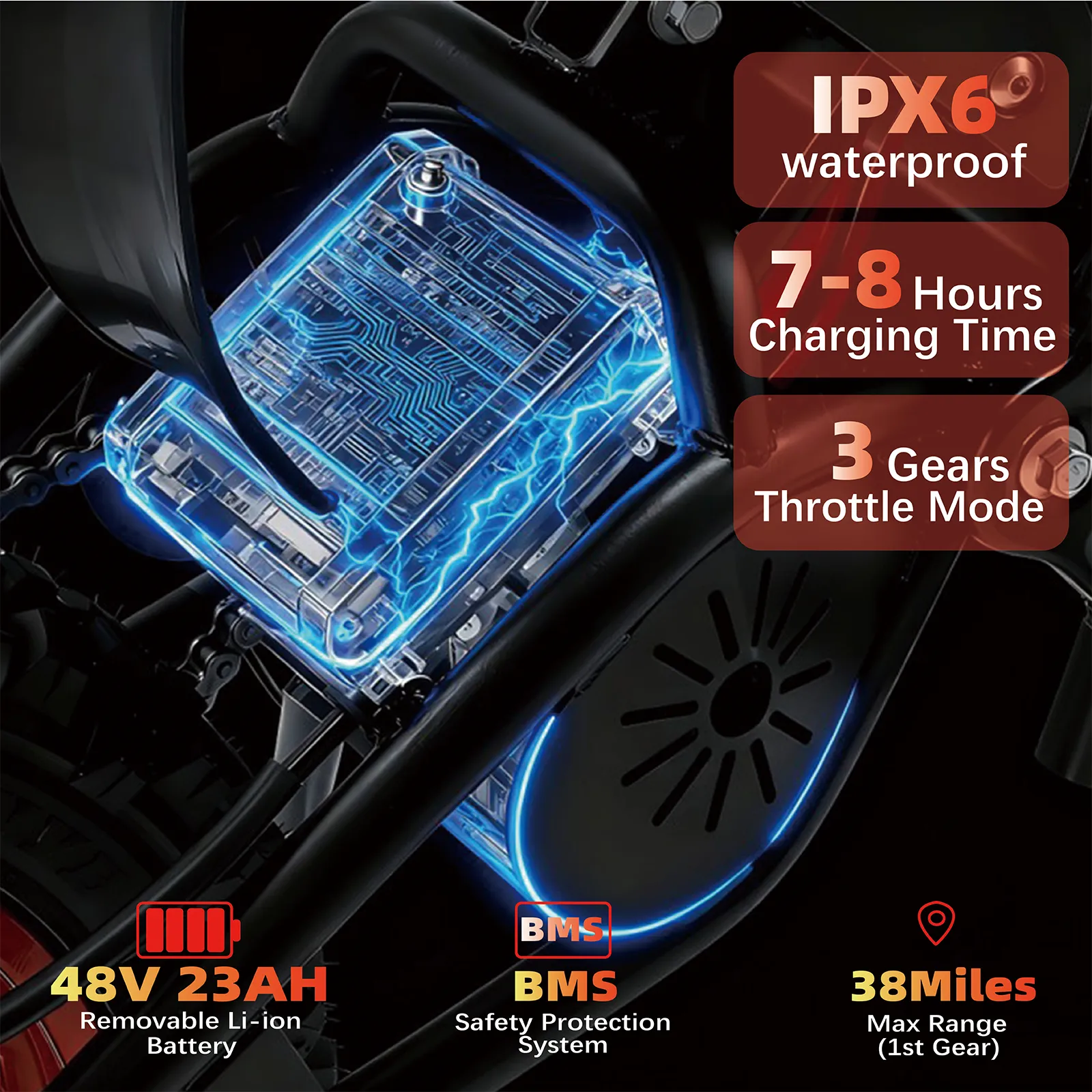 ABKDO Electric Bike for Teens&Adults:3000W mid-drive motor,48V 23Ah battery,max speed 38mph, 14/12-inch,40-mile range,factory warranty long-range off-road mountain e-bike